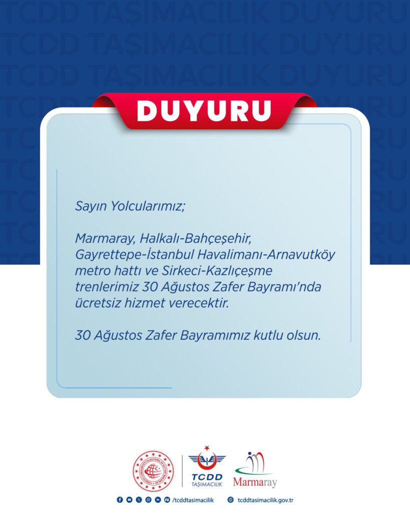 📢 İstanbul’da 30 Ağustos’ta Toplu Ulaşım Ücretsiz!