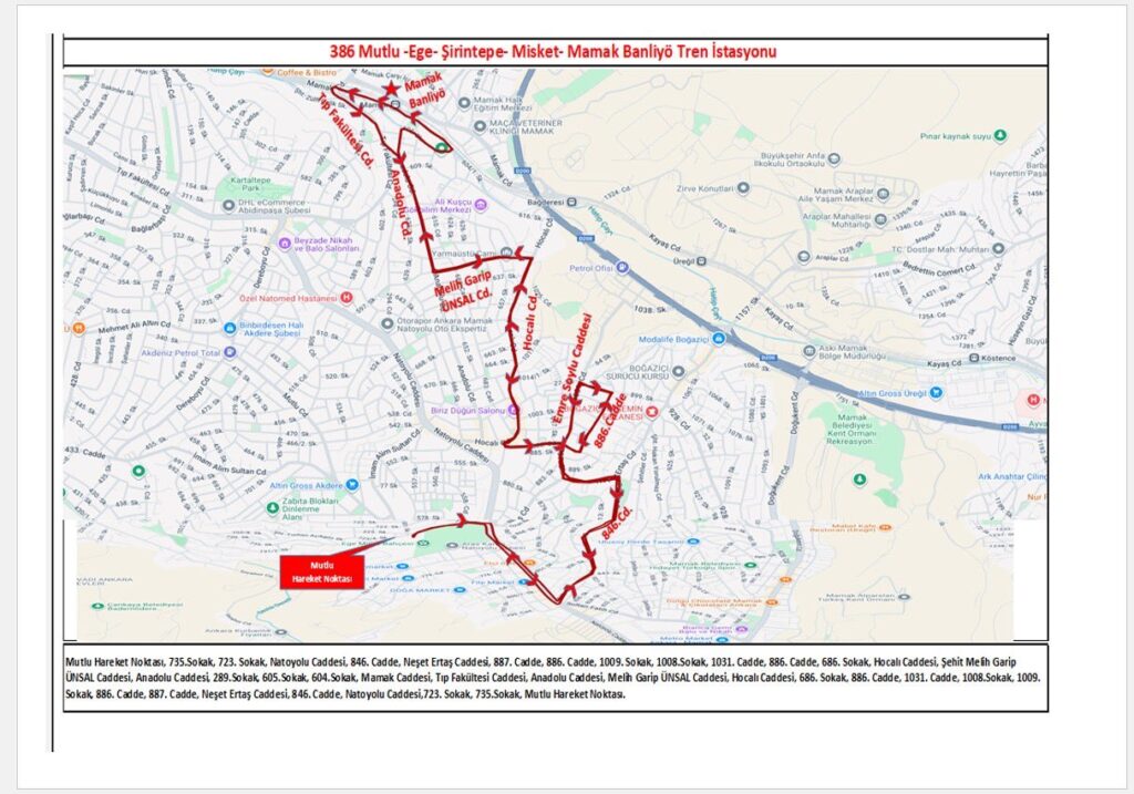 🆕 386 Mutlu – Ege – Şirintepe – Misket – Mamak Banliyö Tren İstasyonu