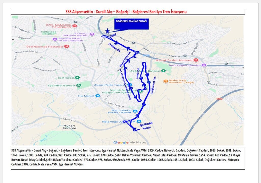 🆕 358 Akşemsettin – Durali Aliç – Boğaziçi – Bağderesi Banliyö Tren İstasyonu