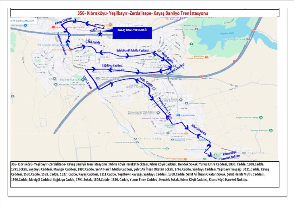 🆕 356 Kıbrısköyü – Yeşilbayır – Zerdalitepe – Kayaş Banliyö Tren İstasyonu