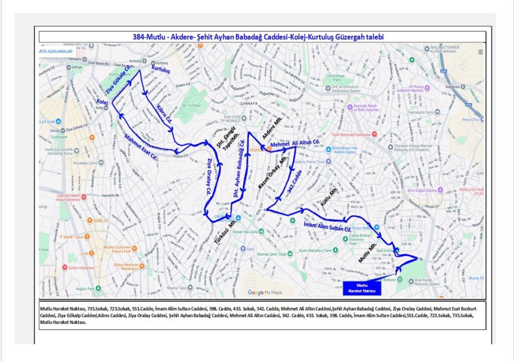 🆕 384 Mutlu – Akdere – Şehit Ayhan Babadağ Cd. – Kolej – Kurtuluş (Ring)