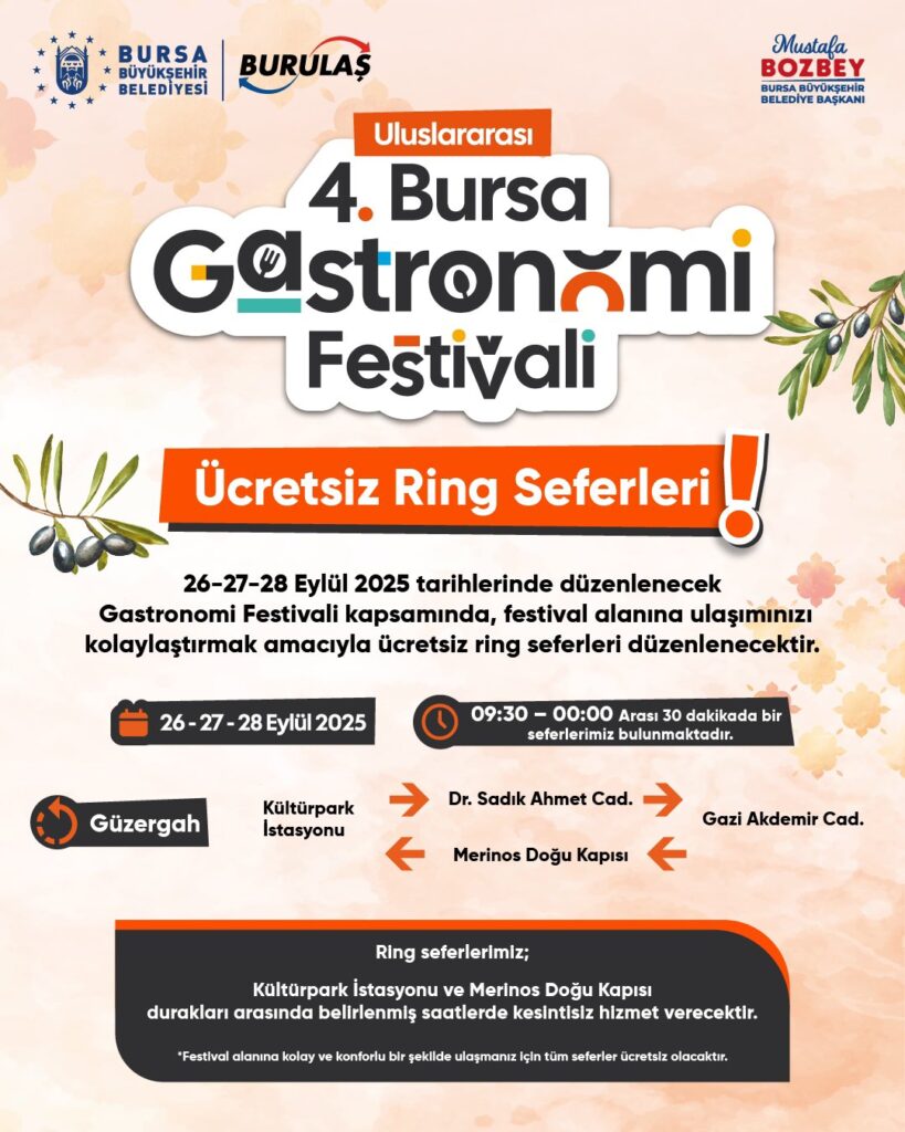 📢 Bursa Gastronomi Festivali’ne Ulaşım İçin Ücretsiz Ring Seferleri ve Otopark İmkanı!