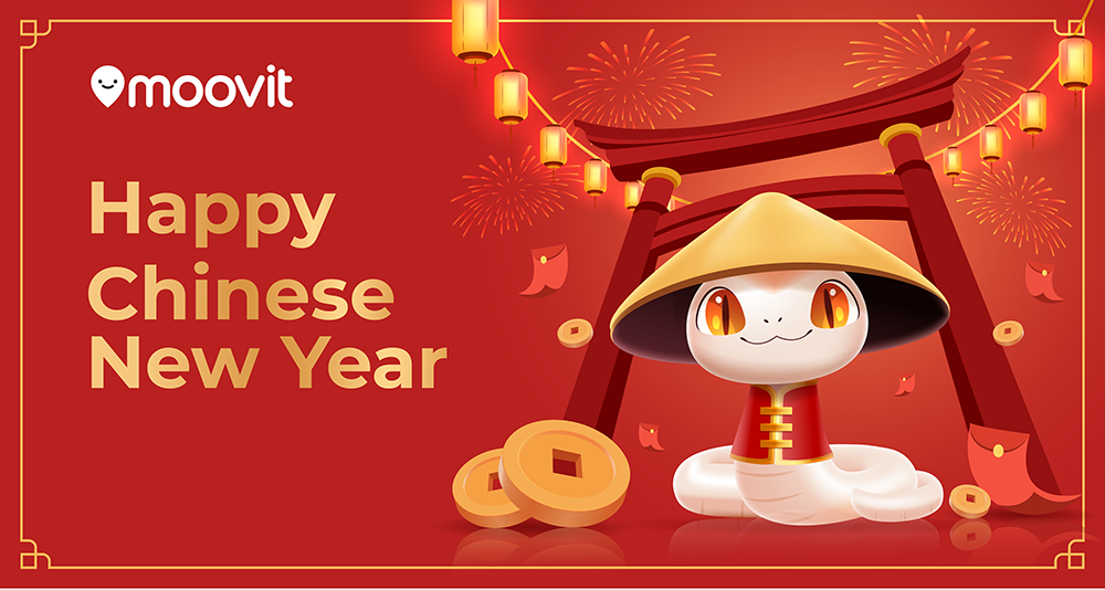 Moovit wishes everyone a very Happy Chinese New Year, an auspicious Year of the Snake. we wish you in the new year, wisdom and flexibility like a snake, career progress like a snake shedding its skin, wealth as endless as a snake’s winding path, and happiness as gentle and entwining as a snake.