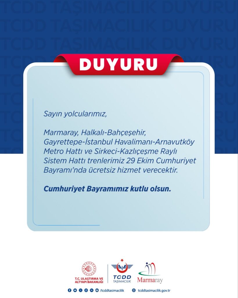 🎉 29 Ekim’de Ücretsiz Ulaşım!
