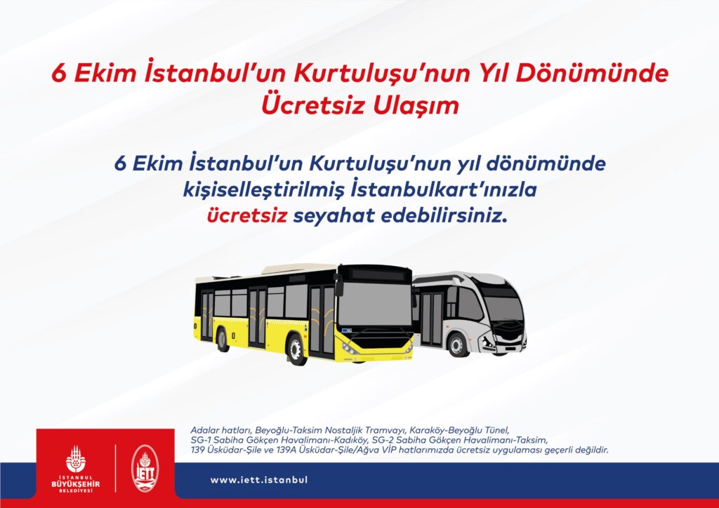 📢 6 Ekim’de İstanbul’da Toplu Ulaşım Ücretsiz!