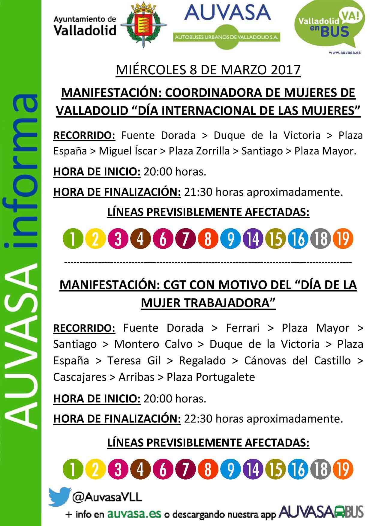 Manifestaciones el Jueves 9 de Marzo