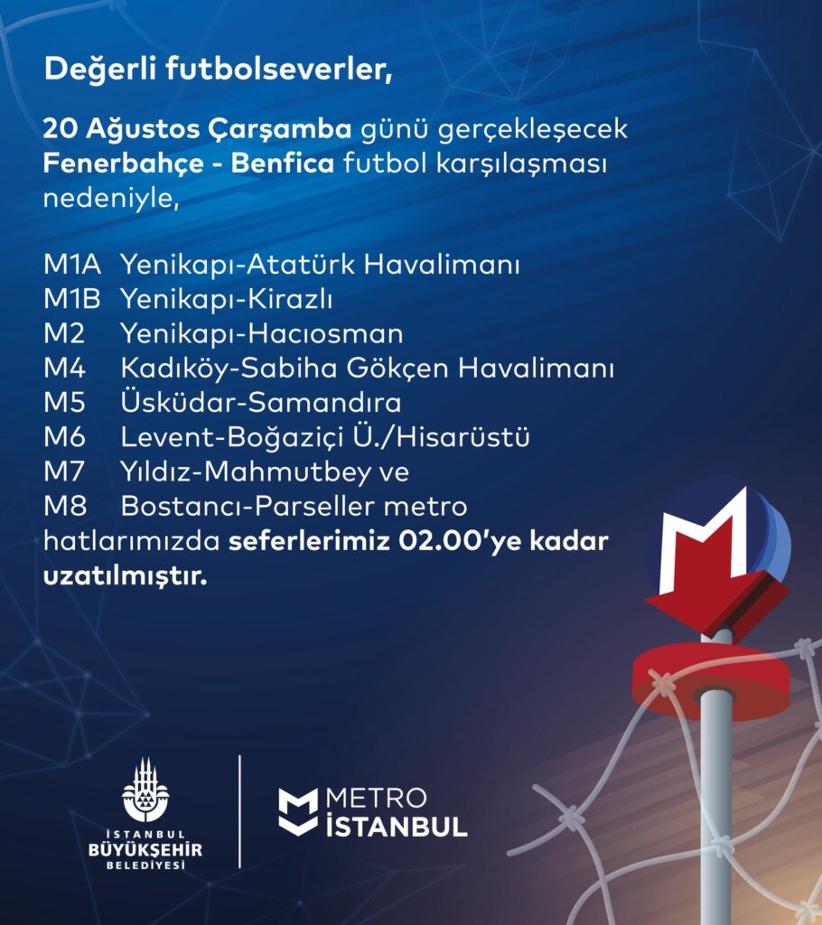 📢 Fenerbahçe – Benfica Maçı İçin İstanbul’da Toplu Taşıma Düzenlemeleri!